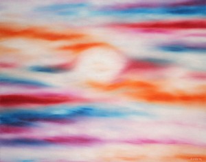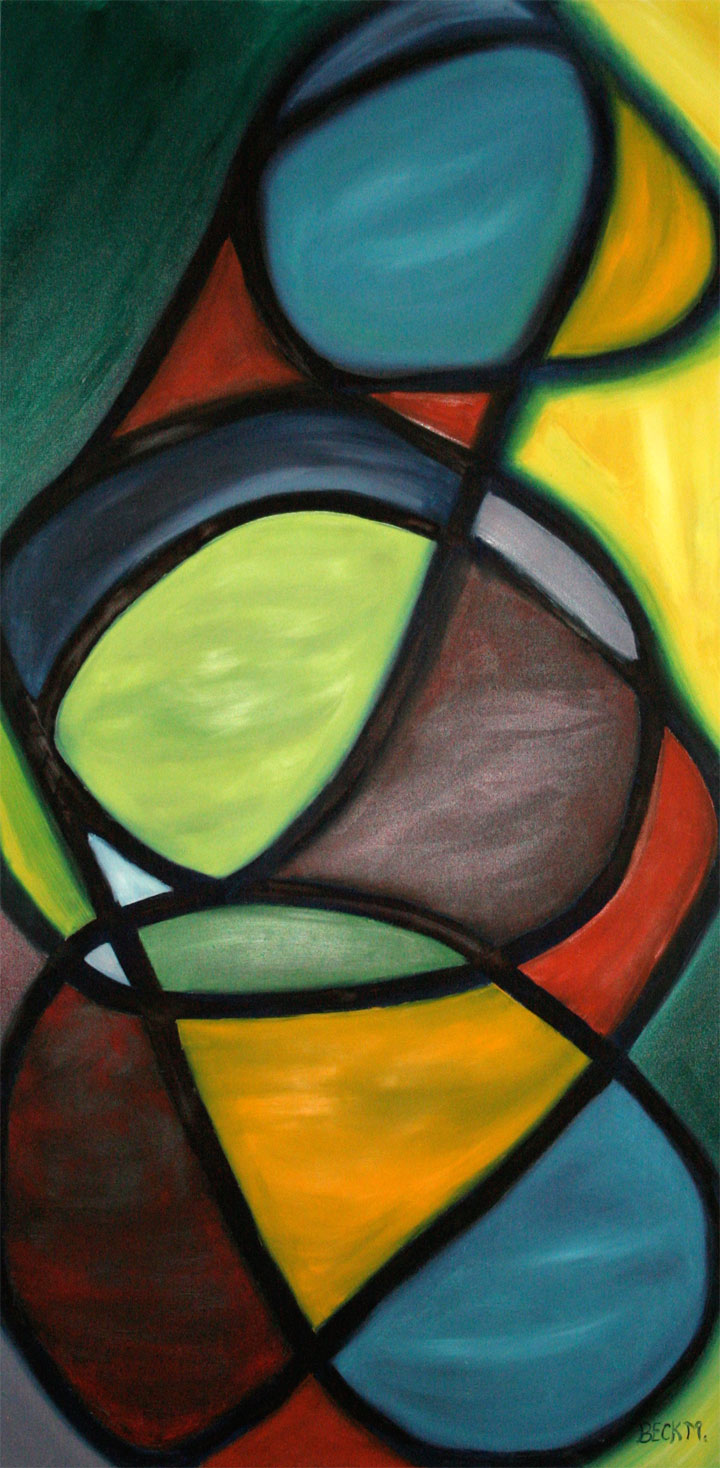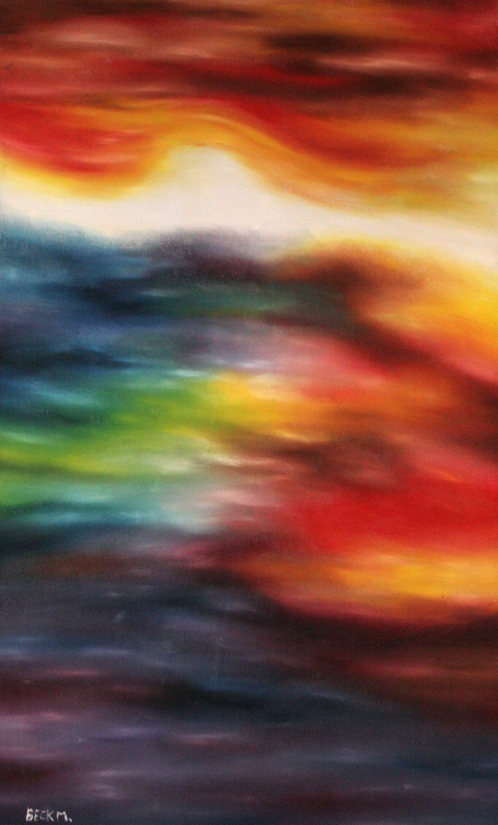 Becky’s abstracts are truly a wonder to behold in person. In fact, some have said photos just don’t do them justice. An exciting study in color, these paintings have an ethereal quality and can mesmerize the viewer for hours. Some radiate joy while others evoke a sadness from deep within, all the while tricking the eye on the true focal point these dreams of oil and canvas.